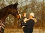 Petra Frank mit dem selben Pferd, wie ihr Sohn Robin. Der Wallach geht mit ihr Dressur |